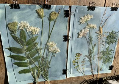 Révélé par l’eau, votre herbier cyanotype sera la première pierre d’un herbier de la flore de votre jardin ou de votre balade forestière favorite.